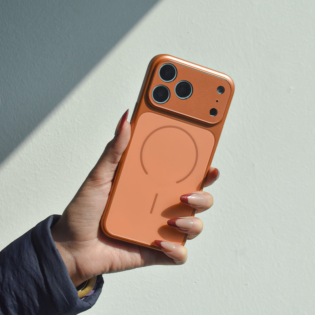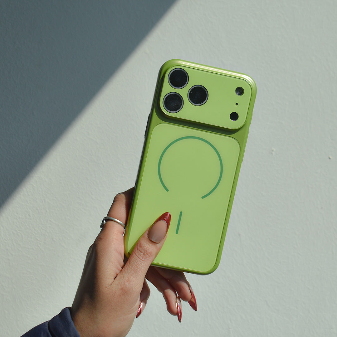 AuraMag Matte Case is designed for those who love clean aesthetics with everyday protection. Featuring a soft-touch matte finish and a sleek built-in magnetic ring, this case delivers effortless MagSafe compatibility while maintaining a slim, premium look.