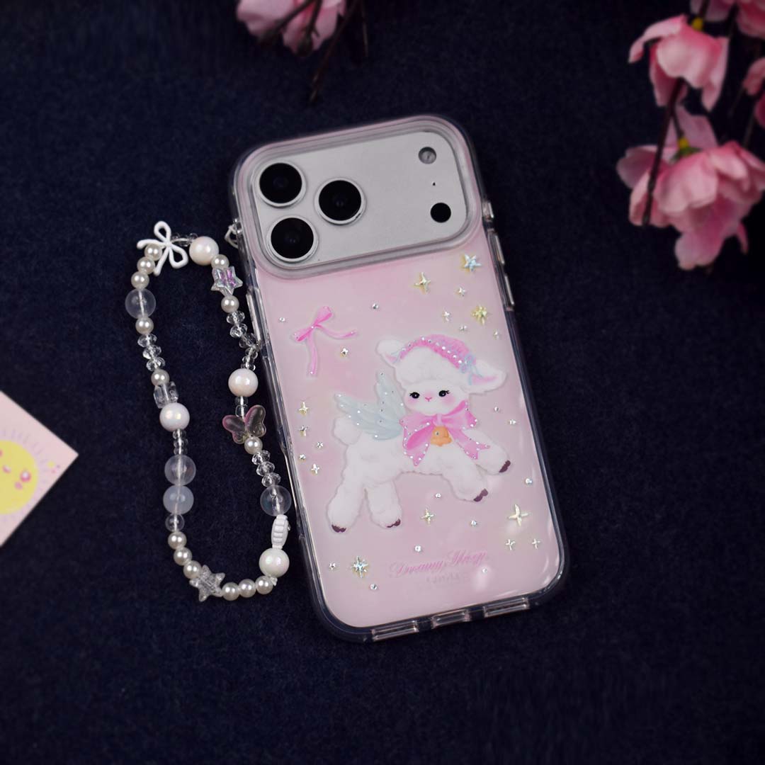 Give your phone a cute, dreamy makeover with the Dreamy Angel Lamb Case. The pastel pink design with an adorable angel lamb and pearl charm instantly makes your phone stand out while keeping it protected for everyday use.