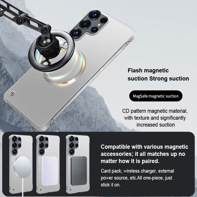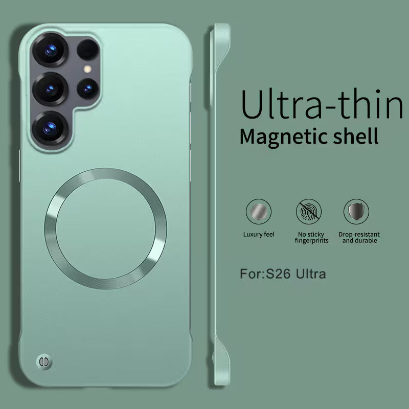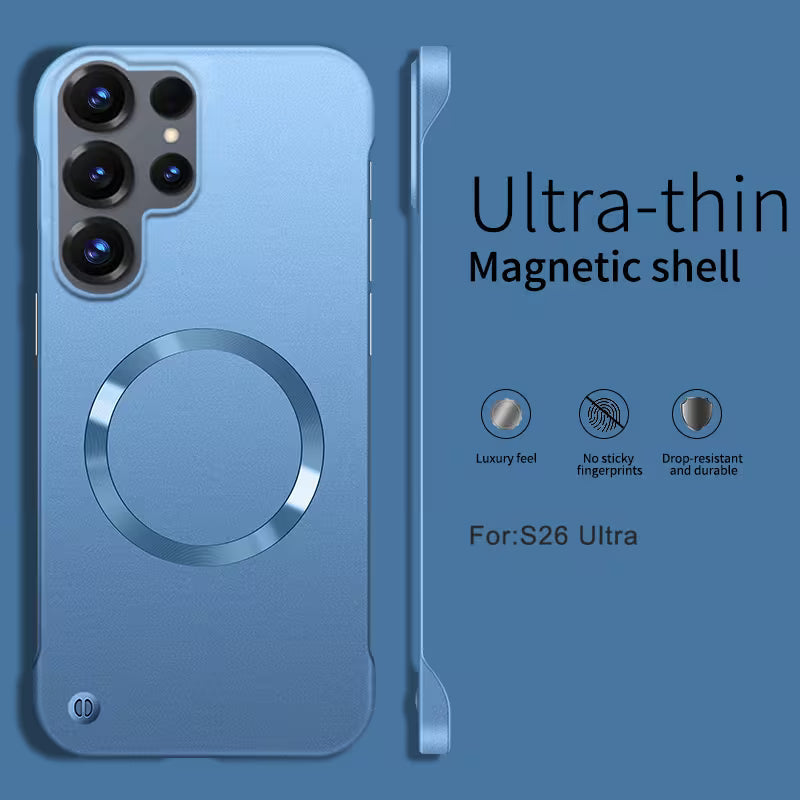 The Galaxy S26 Ultra Slim Magnetic Shell Case features an ultra-thin design that protects your phone without adding bulk. Built with a strong magnetic ring for seamless wireless charging, it offers a smooth matte finish that resists fingerprints while providing a comfortable grip.