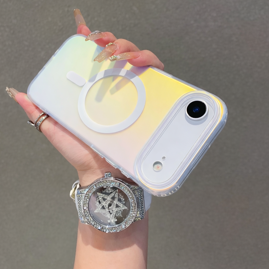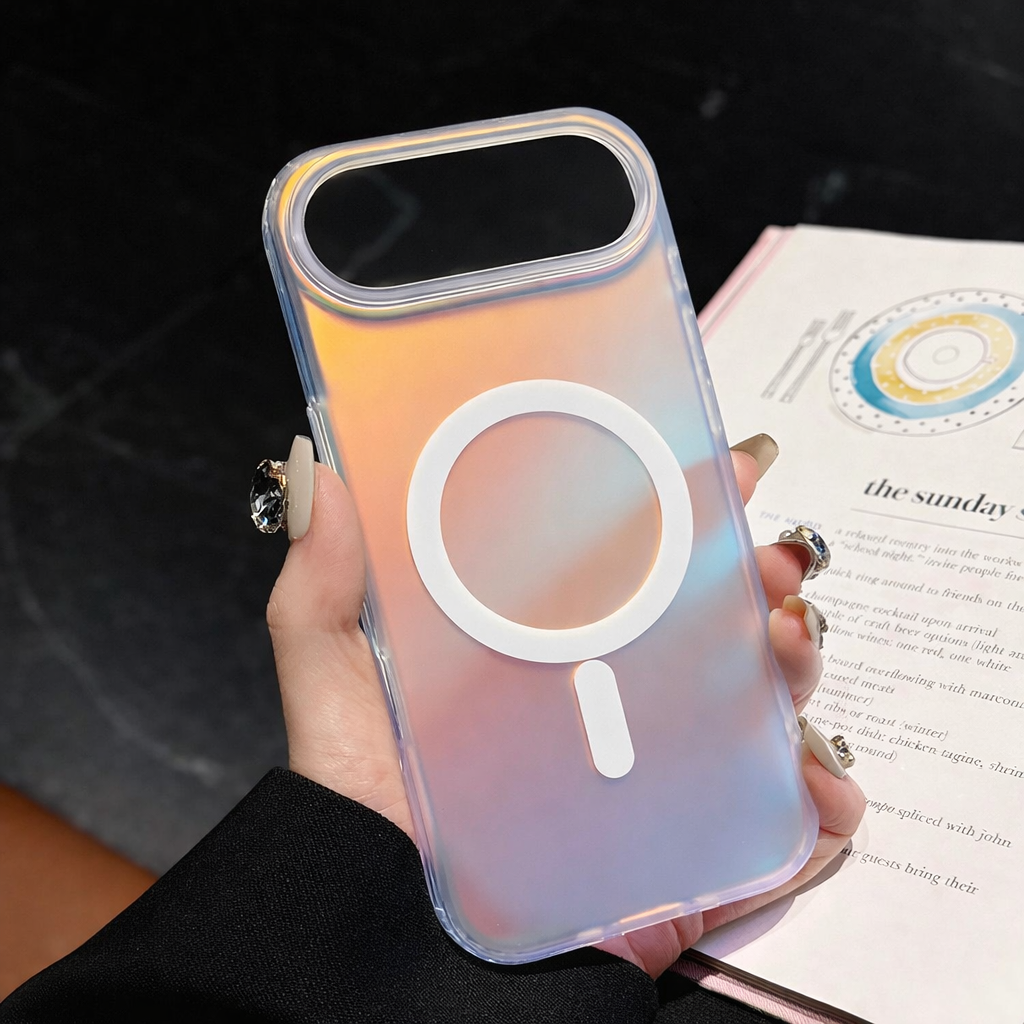Add a futuristic glow to your iPhone with the Rainbow Mist MagSafe Case. Inspired by dreamy sunset skies, its color-shifting laser finish creates a stunning rainbow effect from every angle. Designed with built-in MagSafe compatibility, it blends style, innovation, and everyday protection in one sleek case.